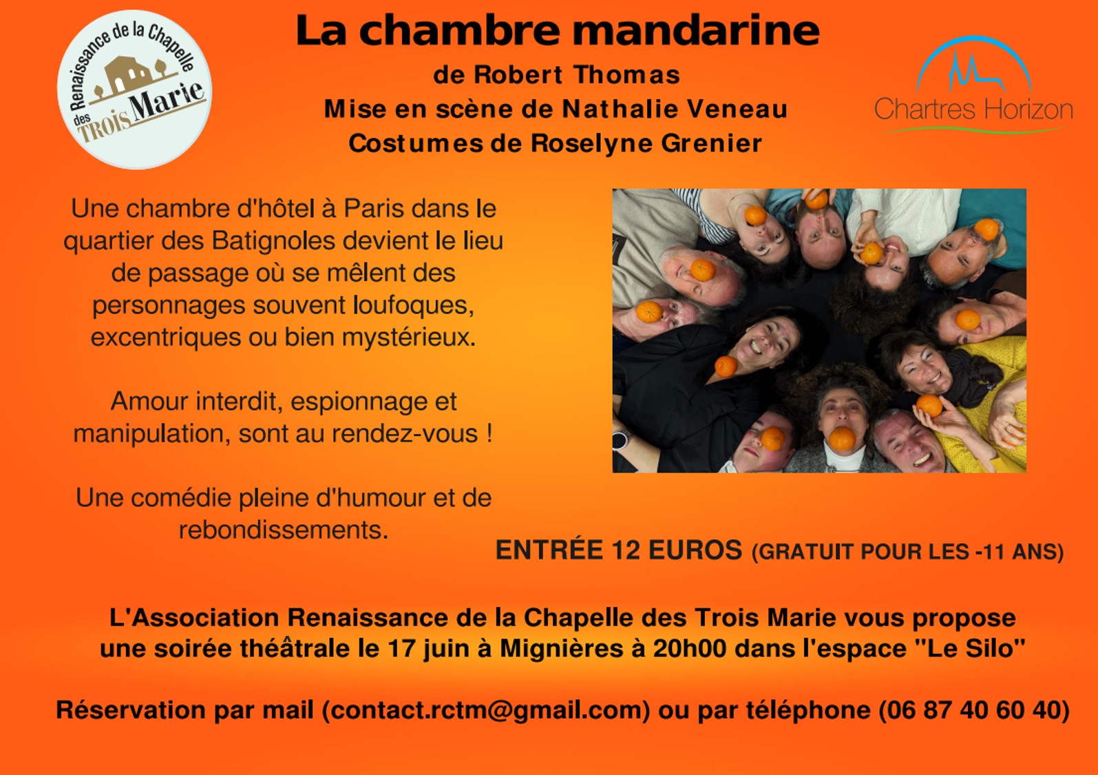 Voir l'image agrandie 17 juin 2023 Soirée Théâtrale : La chambre Mandarine Date/heure 17/06/202320h00 - 23h45
